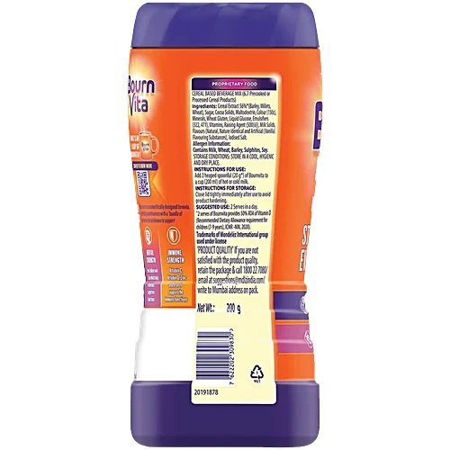 Bournvita Chocolate Drink Mix is a scientifically designed formula, crafted by nutritionists with a bundle of nutrients (calcium, vitamin D, iron, zinc, etc.)