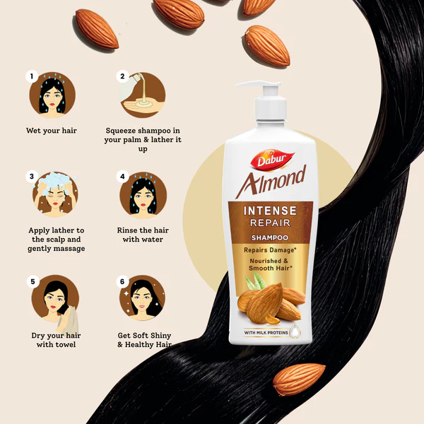 Enriched with the goodness of almonds and milk extracts, this shampoo deeply nourishes and repairs damaged hair, leaving it soft, strong, and beautifully shiny. Perfect for restoring strength and smoothness with every wash.