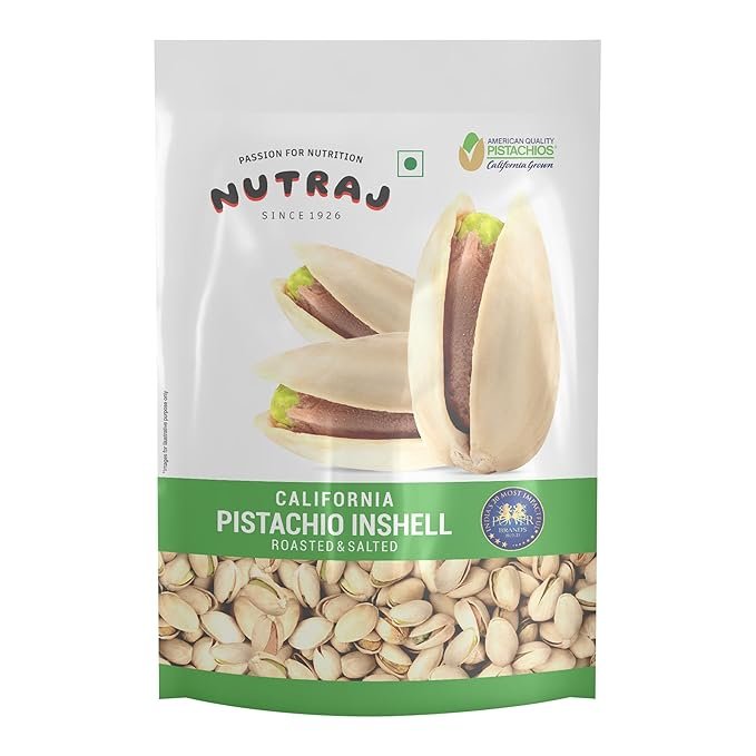 Nutraj pistachios are premium-grade, roasted and salted to perfection, offering a crunchy snack rich in protein and healthy fats for everyday energy.