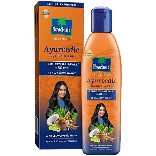 A unique blend of pure coconut oil and 25 powerful Ayurvedic herbs that helps reduce hair fall, strengthens roots, and promotes healthy, thick, and beautiful hair. Nourishment powered by Ayurveda, care trusted by Parachute.
