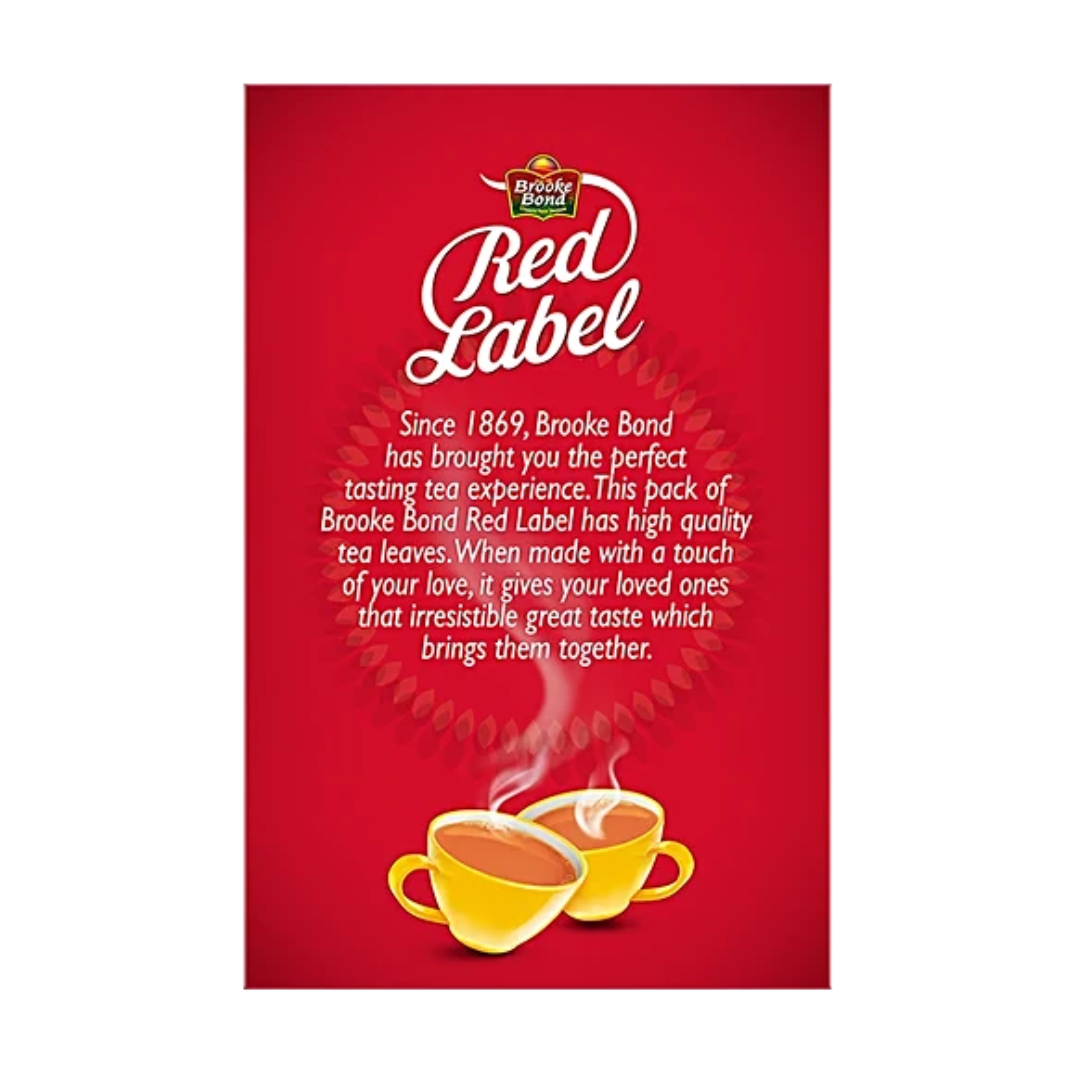 Brooke Bond Red Label Tea is a blend CTC tea with best quality leaves, processed in the unique Brooke Bond Tea Excellence Centre .It was in 1903 that Brooke Bond launched “Red Label”. Every cup of Red Label is brewed with the best-chosen tea leaves, that ensure your tea has strength, rich colour, and refreshing taste.